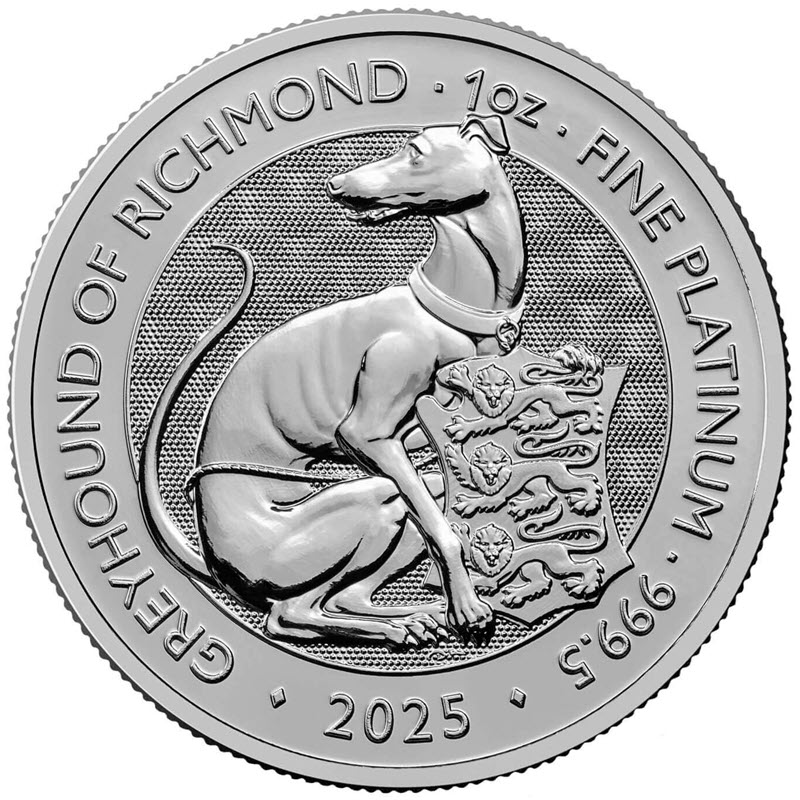 Королевский монетный двор выпустил монету «Грейхаунд Ричмонда» 2025 года  в 1 унцию платины - восьмая из второй серии «Звери Тюдоров». Дизайн разработан Дэвидом Лоуренсом (David Lawrence). У нее качество BU. Поставляется в капсуле.