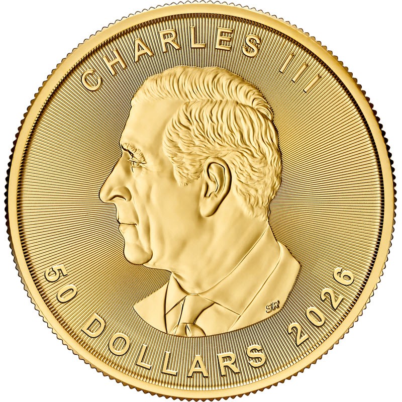 Золотая монета Канады "Кленовый Лист" 2026 г.в., 31.1 г чистого золота (проба 9999)