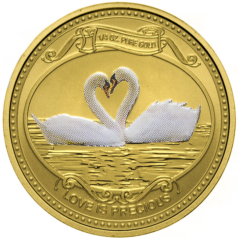 Подарочная монета в коробочке с сертификатом. Отличный подарок любимым. 0,25 унции (7.78 г) чистого золота.