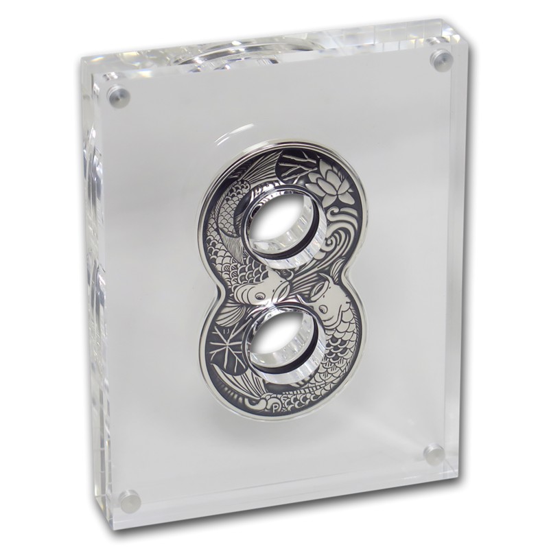 Сочетая в себе символы удачи, процветания, амбиций и богатства, эта инновационная монета является достойной данью китайской культуре и традициям. Благодаря своей способности плавать вверх по течению, рыба кои долгое время демонстрировала стойкость и силу цели в восточных культурах. Как таковые они стали символом удачи, изобилия, смелости, независимости и амбиций. Число восемь также считается чрезвычайно удачным, так как китайское слово для «восьми» звучит похоже на «удачу» или «деньги».