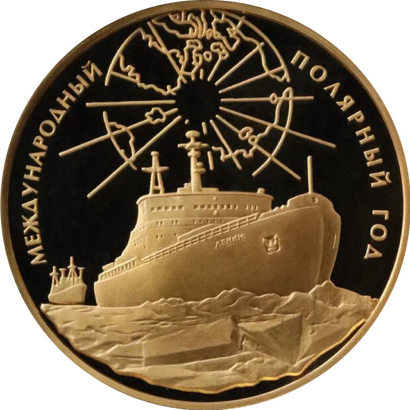 Золотая монета Банка России "Международный полярный год. Ледокол "Ленин"