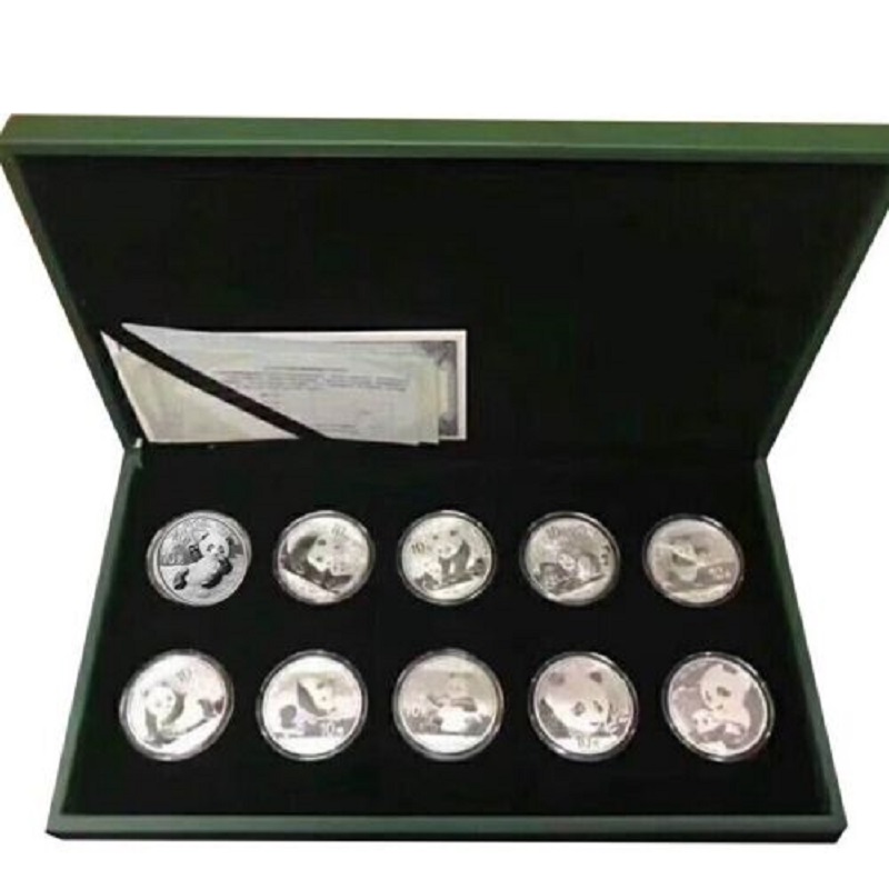 Набор из 10-ти серебряных монет Китая «Панды» в фирменном футляре.