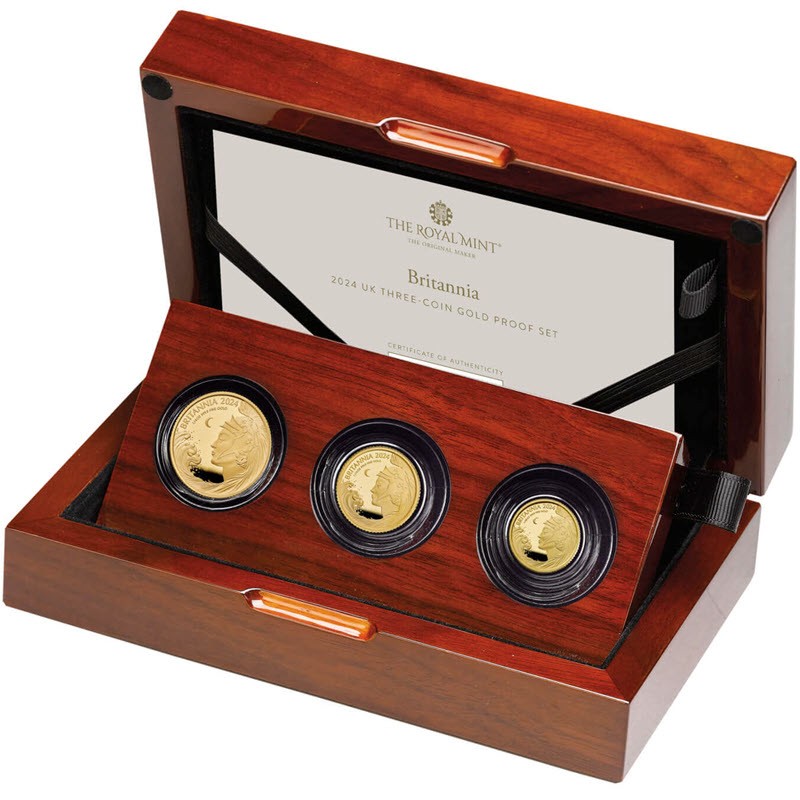 Набор из 3-х золотых монет Великобритании "Британия" 2024 г.в. (пруф), 12.45 г чистого золота (проба 9999)