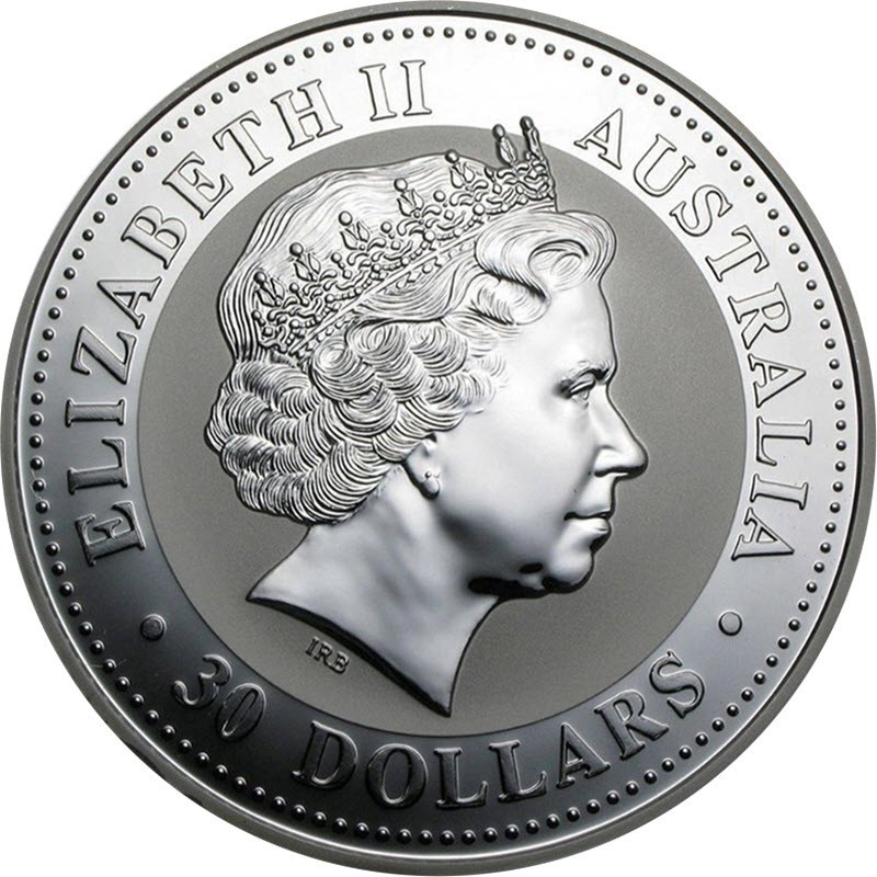 На аверсе изображен портрет Её Величества Королевы Елизаветы II дизайнера Иена Рэнка-Бродли (IRB). Вверху надпись: ELIZABETH II  AUSTRALIA (Елизавета II, страна-эмитент). Внизу по ободу - 30 DOLLARS (номинал монеты).