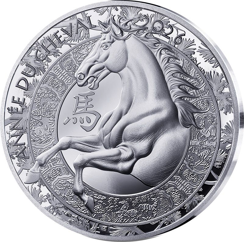 Серебряная монета Франции "Год Лошади" 2026 г.в. (пруф), 22.2 г чистого серебра (проба 999)