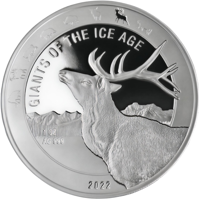 Эта прекрасная 1 унцовая серебряная монета седьмая из серии «Гиганты Ледникового периода». У неё качество бриллиант анциркулейтед. Ограниченный тираж 15 000 штук.