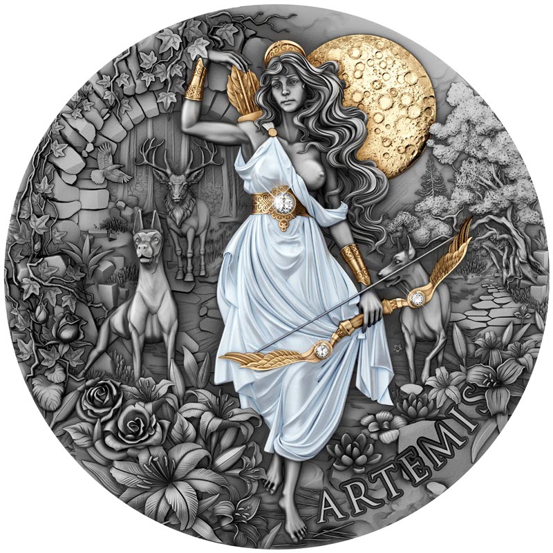 Эта удивительная серебряная монета весом в 2 унции от литовского монетного двора T&S Coin, посвящена Артемиде. У нее качество античной отделки, селективная окраска, выборочное золочение и бриллиантовые вставки 0.03 карата. Поставляется в оригинальном футляре с сертификатом подлинности. Тираж: 500 штук.