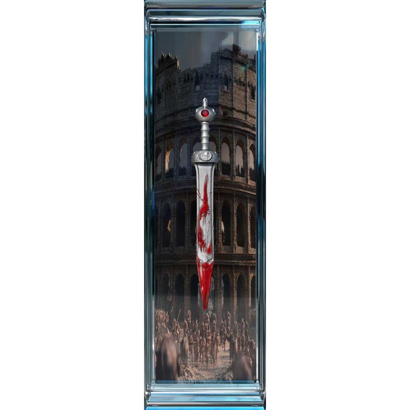 На реверсе изображен меч Гладиус. Вверху в рукоятке кристалл красного цвета.