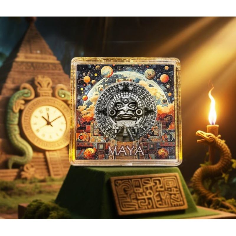 Эта чудесная серебряная монета весом в 2 унции посвящена цивилизации майя. У нее качество античной отделки. Поставляется в футляре с сертификатом подлинности. Тираж: 299 штук.