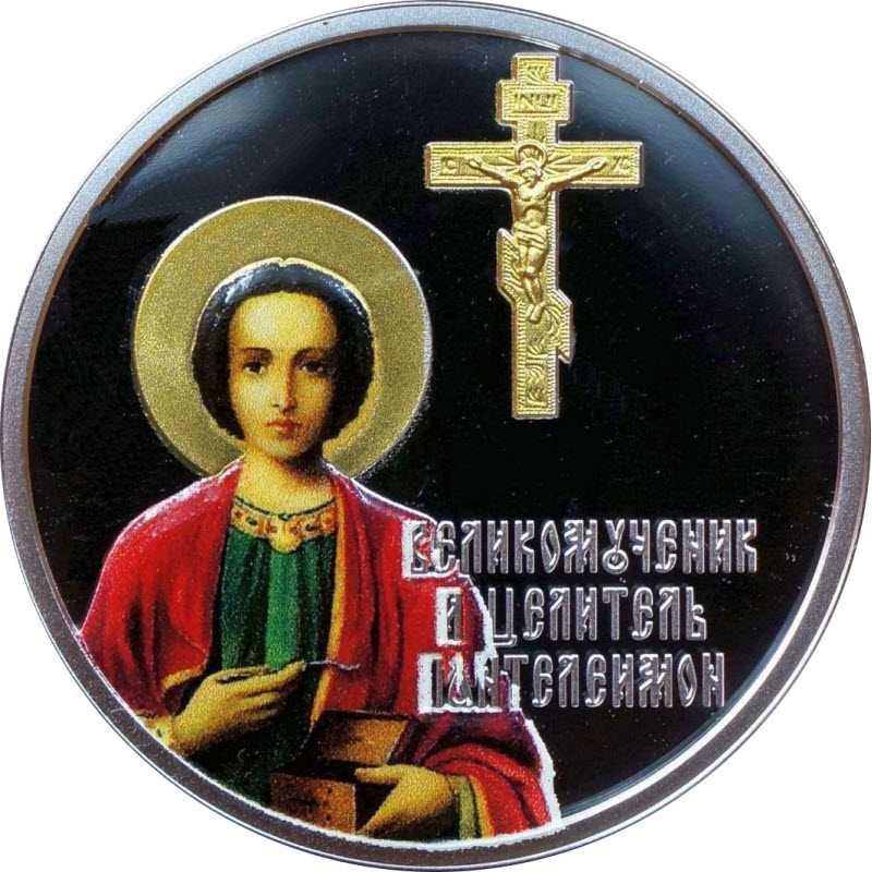 На реверсе изображение Великомученика и Целителя Пантелеймона, выполненное цифровой цветной печатью, нимб святого покрыт 24-каратным золотом. Изображение святого полностью взято с иконы Великомученика и Целителя Пантелеймона в Петропавловском кафедральном соборе в Казани. Справа от святого расположено позолоченное рельефное изображение креста; внизу справа надпись: ВЕЛИКОМУЧЕНИК И ЦЕЛИТЕЛЬ ПАНТЕЛЕИМОН.