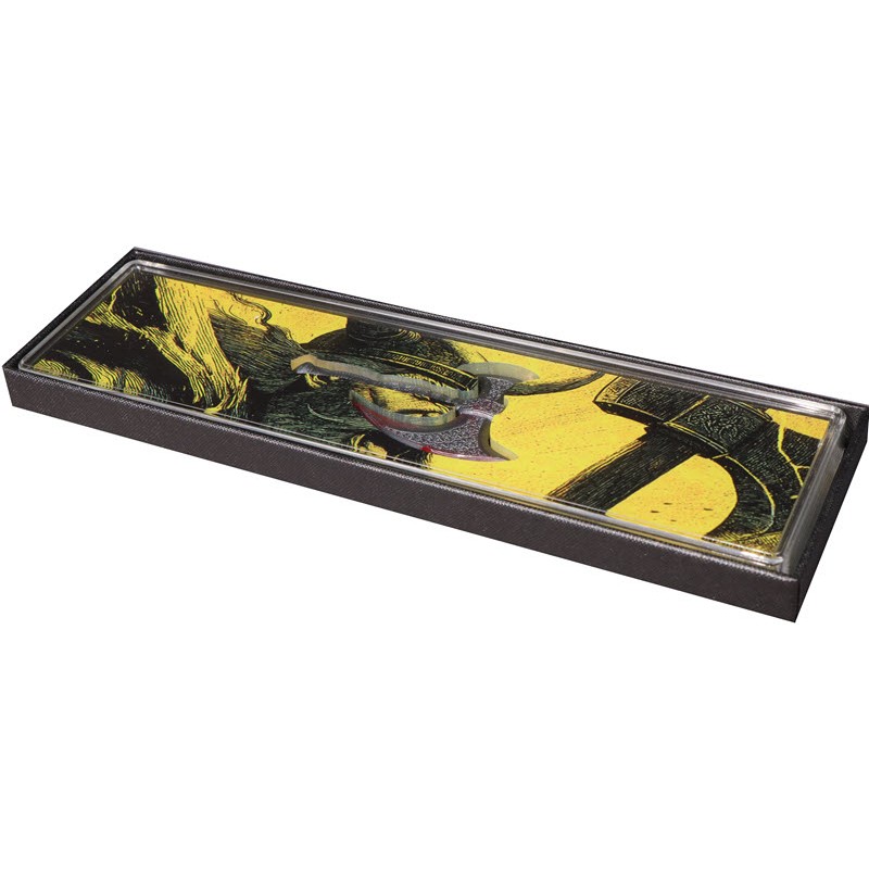 Эта прекрасная серебряная монета весом в 2 унции посвящена боевому топору. У нее размеры 46 Х 85 мм, качество античной отделки, черный обсидиан и селективное УФ-свечение. Поставляется в оригинальном футляре с сертификатом подлинности. Тираж: 349 штук.