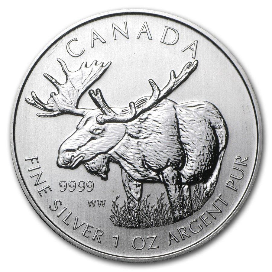 Серебряная монета Канады "Лось" 2012 г.в., 31.1 г чистого серебра (Проба 9999)