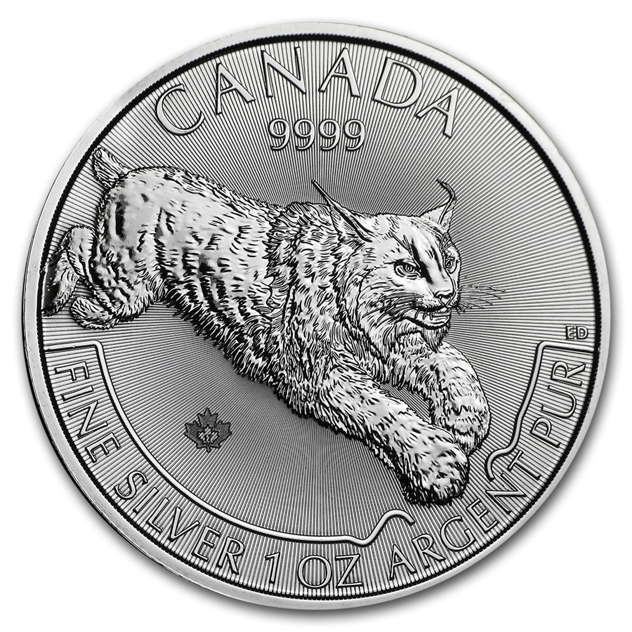 Серебряная монета Канады "Рысь" 2017 г.в., 31.1 г чистого серебра (Проба 9999)