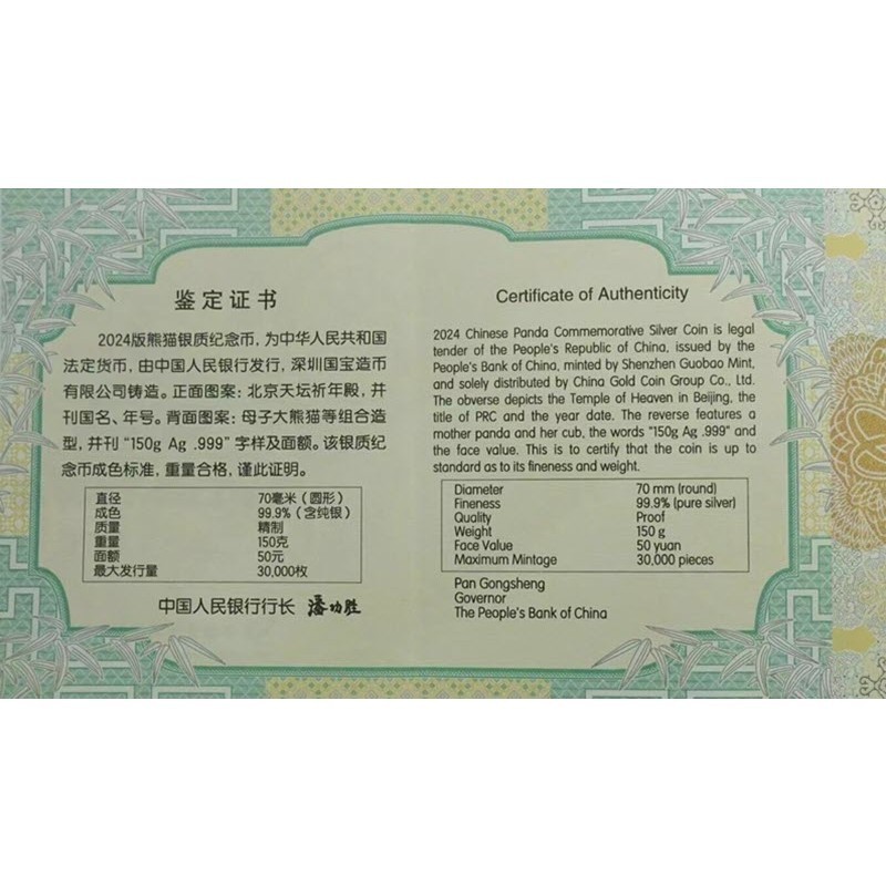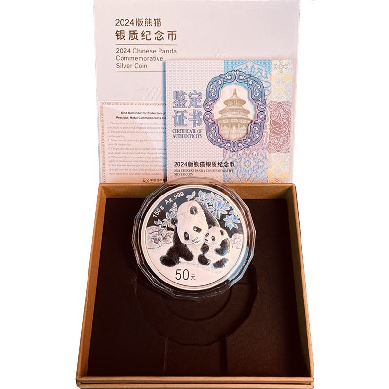 Серебряная монета Китая "Панда" 2024 г.в. (пруф), 150 г чистого серебра (проба 999)