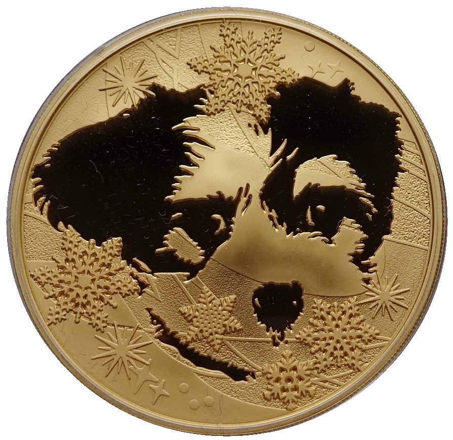 Серебряная монета с позолотой, выпущенная Московским монетным двором.