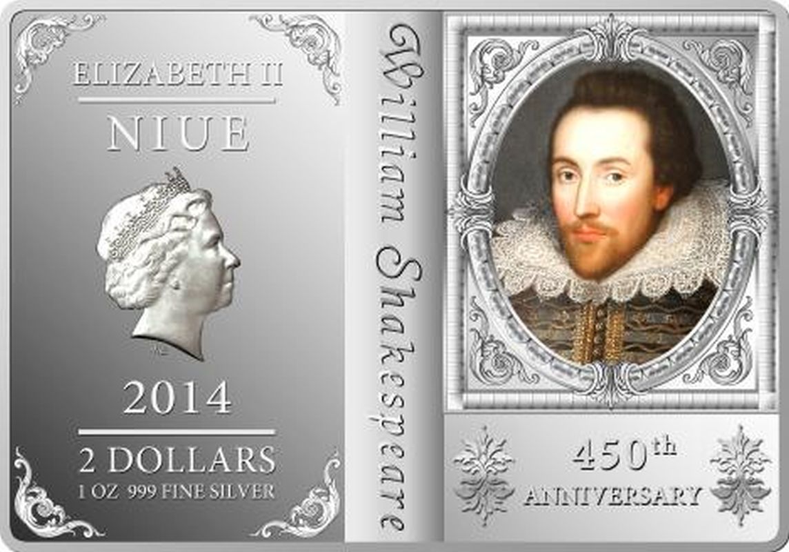 Монетный двор Новой Зеландии в 2014 году выпустил монету «450 лет со дня рождения Шекспира».