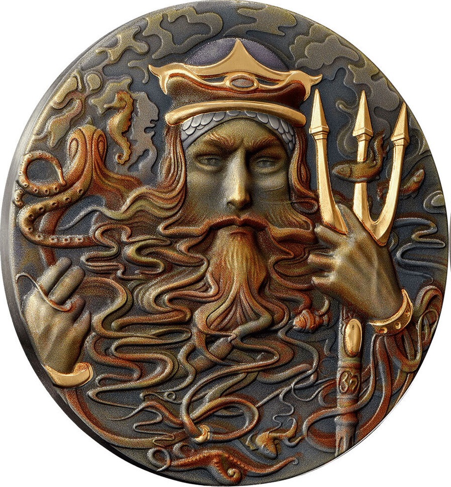 Эта замечательная серебряная монета весом в 2 унции посвящена легендарному греческому мифическому божеству Посейдону и является новым выпуском серии «Богини и боги». Монета имеет качество античной отделки с тонкой и художественной окраской с высоким рельефом. Монета поставляется в тематическом футляре вместе с сертификатом подлинности. Ограниченный тираж 500 штук по всему миру.