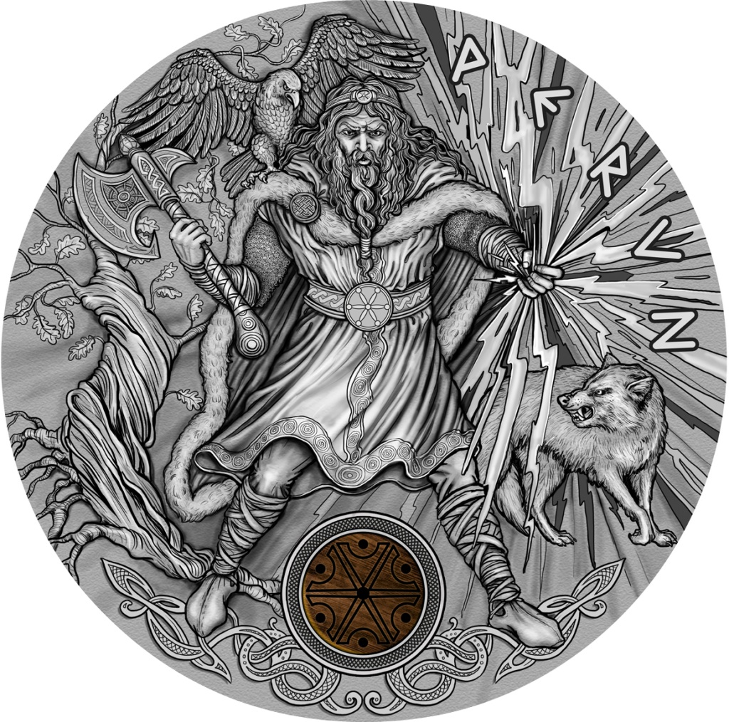 Серебряная монета Ниуэ "Славянский пантеон. Перун" 2018 г.в., 62,2 г чистого серебра (Проба 999)