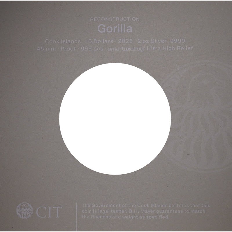Серебряная монета Островов Кука "Горилла" 2025 г.в, 62.2 г чистого серебра (проба 9999)