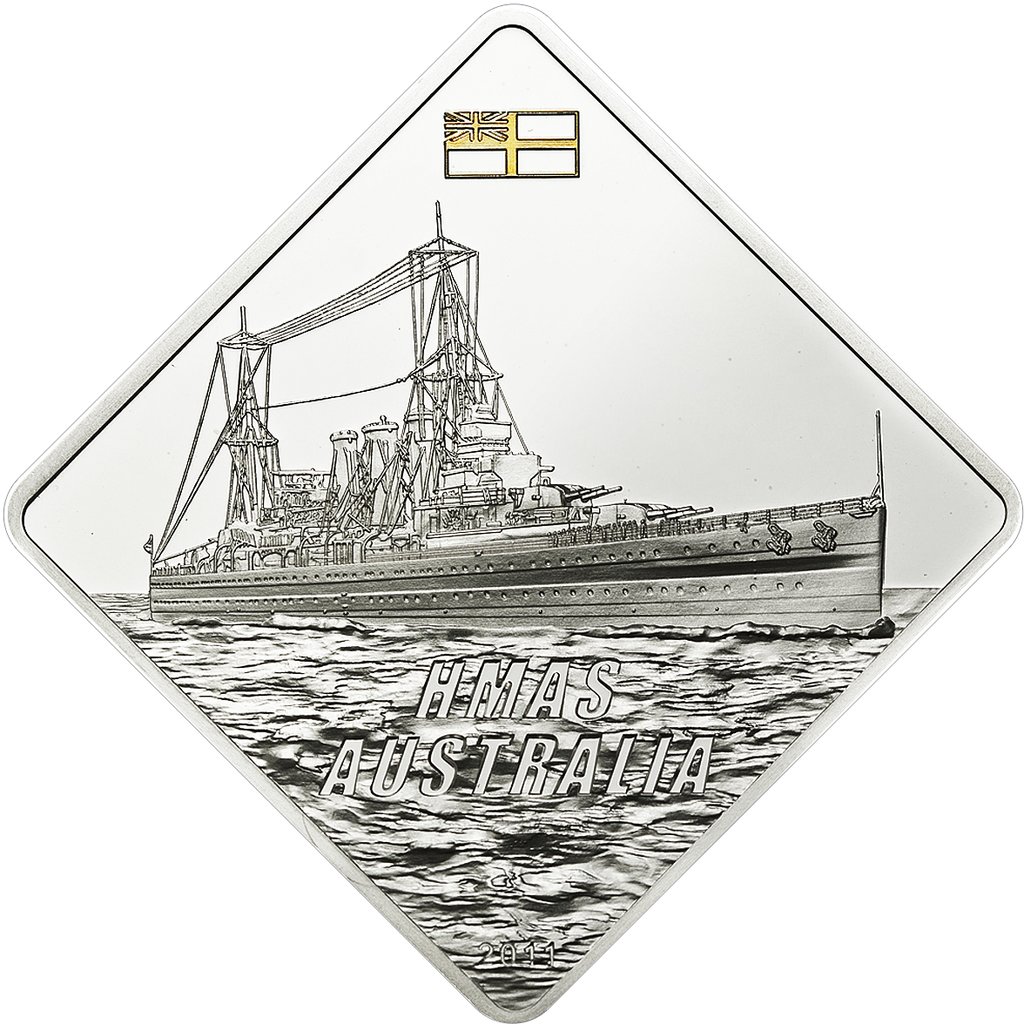 Крейсер «Австралия» (HMAS Australia) имел бортовые номера I84, D84 и C01. Принадлежал к тяжелым крейсерам класса County. Строился в Клайдбанке (Шотландия) на верфях «Джон Браун энд компани» (John Brown and Co) по заказу правительства Австралии. Заложен 26.08.1925, спущен на воду 17.05.1927, принят в состав Королевского флота Австралии 24.05.1928.