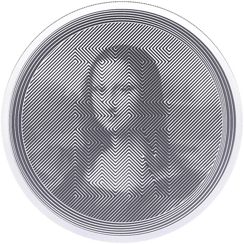На реверсе изображение текстурированной поверхности, напоминающий эффект муара. Они отображают скрытое изображение Мона Лизы, с наложением слова ICON.