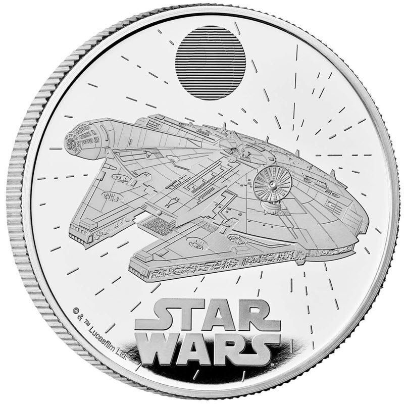 Серебряная монета Великобритании "Звездные войны – Тысячелетний сокол" весом в 1 унцию 2024 года посвящена одному из самых легендарных космических кораблей в истории кино. "Тысячелетний сокол" - самый прославленный корабль в Галактике "Звездных Войн". Он помог уничтожить обе "Звезды смерти" и выиграть бессчетное множество других битв. Монета качества пруф поставляется в оригинальном футляре с сертификатом подлинности. Тираж: 3000 штук.