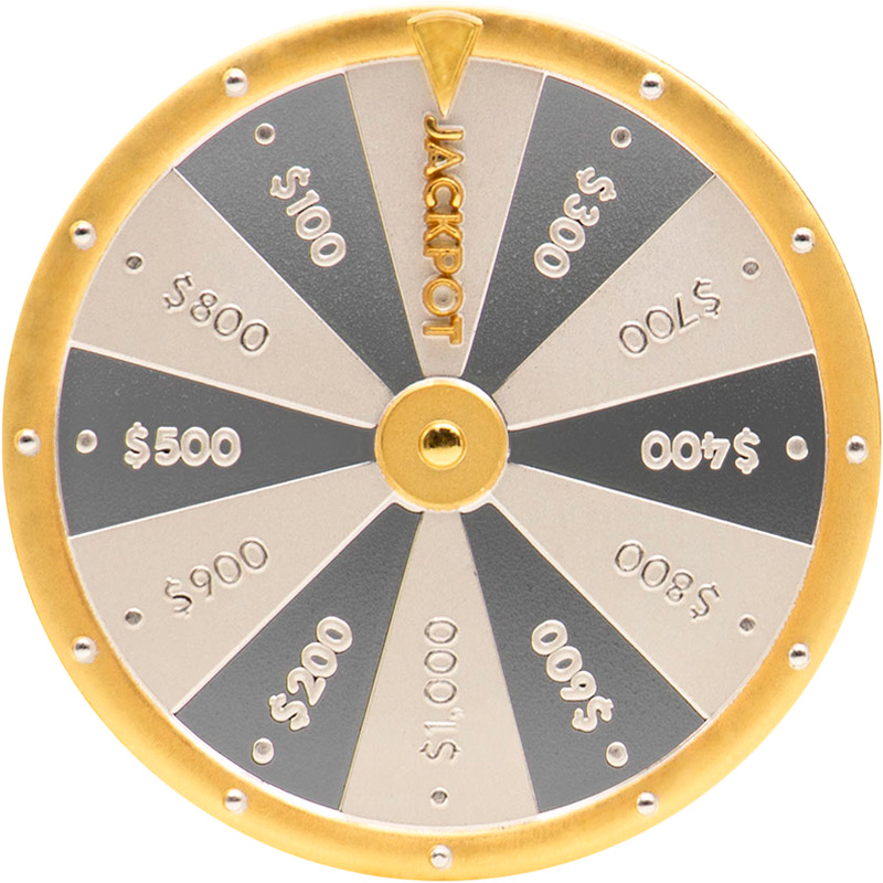 Дизайн реверса выполнен в стиле «Luxury Casino» (Лакшери Казино) и разделен на 12 сегментов с денежными суммами (от $100 до $1000), с застывшем на секторе JACKPOT (Джекпот) указателе. Обод жетона, указатель, цифры и надпись Jackpot (Джекпот) покрыты 24-каратным золотом.