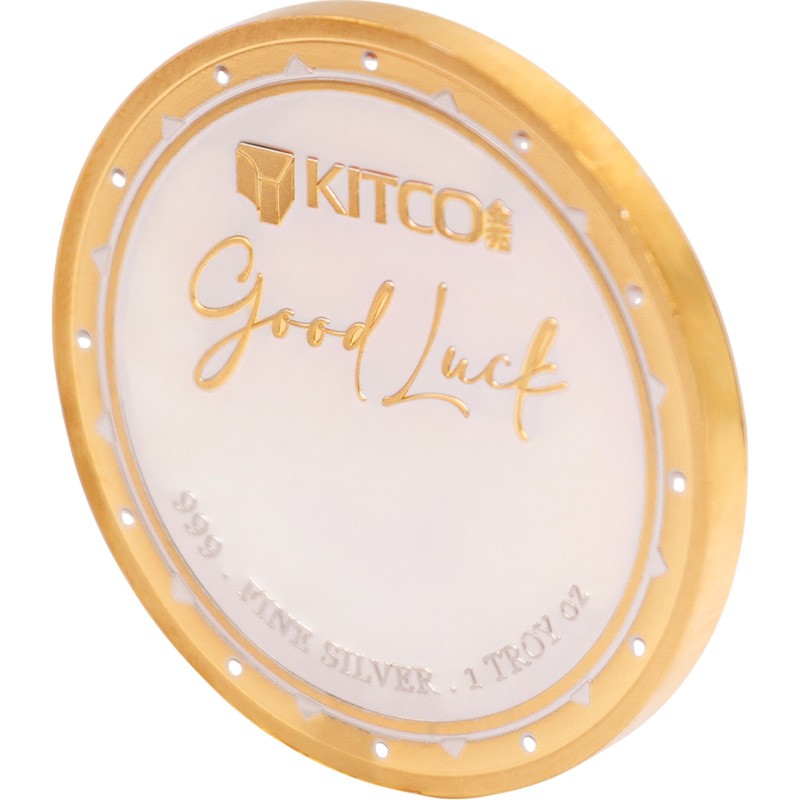 На аверсе в центре расположен официальный логотип компании Китко — абстрактная геометрическая фигура. Вверху надпись в две строки: KITCO 福 Good Luck 999.  FINE SILVER . 1 TROY oz (название компании; иероглиф, обозначающий удачу; серия, вес и проба серебра).