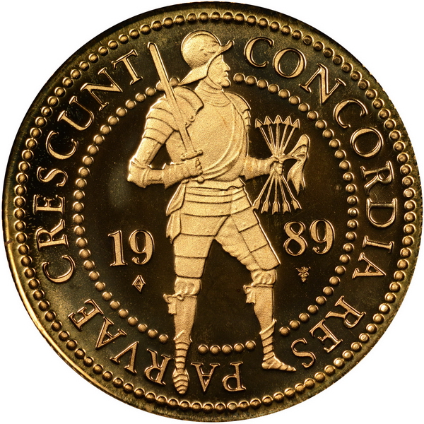 Золотая монета Нидерландов «2 дуката» 1989 года выпуска.