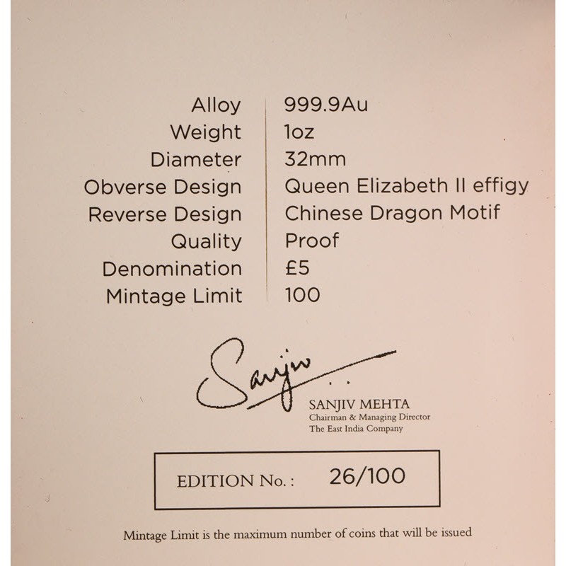 Золотая монета «Современный Торговый Доллар Китая» от Ост-Индской компании (EIC). У нее качество пруф и высокий рельеф. Поставляется в оригинальном футляре с сертификатом подлинности. Тираж: 100 штук.