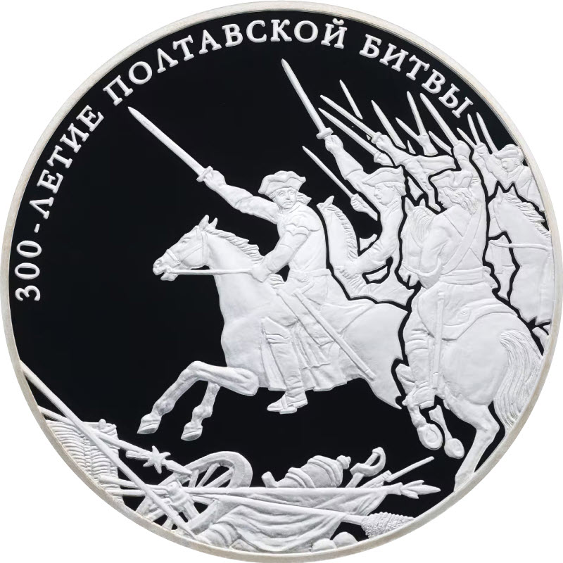 Серебряная монета из исторической серии: 300-летие Полтавской битвы (8 июля 1709 г.)