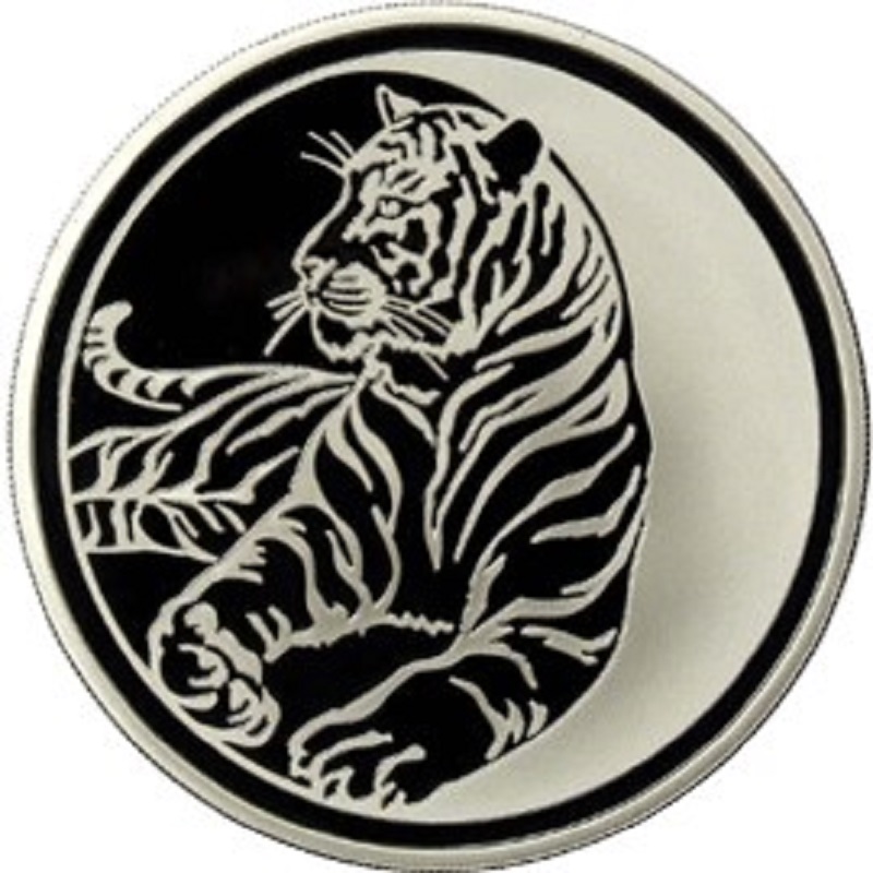 в круге, обрамлённом сплошным ободком, слева - изображение тигра, справа - матированное изображение полумесяца.
